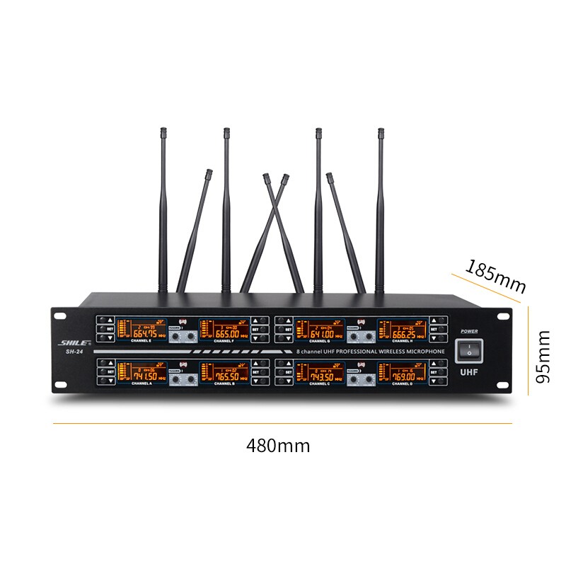 狮乐(SHILE)U段高保真无线话筒 SH-24 一拖八无线话筒 一台主机+四只鹅颈麦+四只手持麦